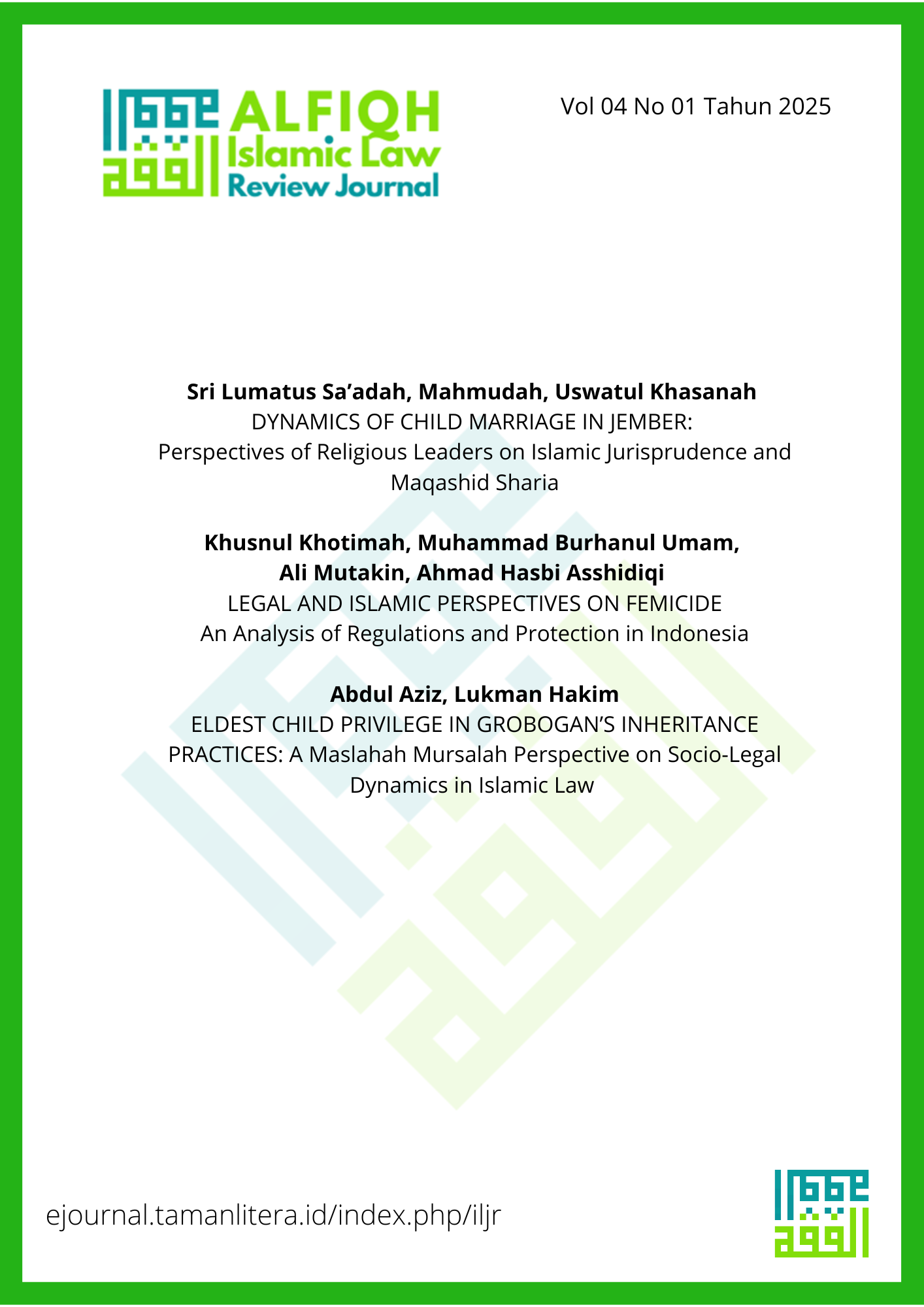 Vol. 4 No. 1 (2025): April, ALFIQH Islamic Law Review Journal