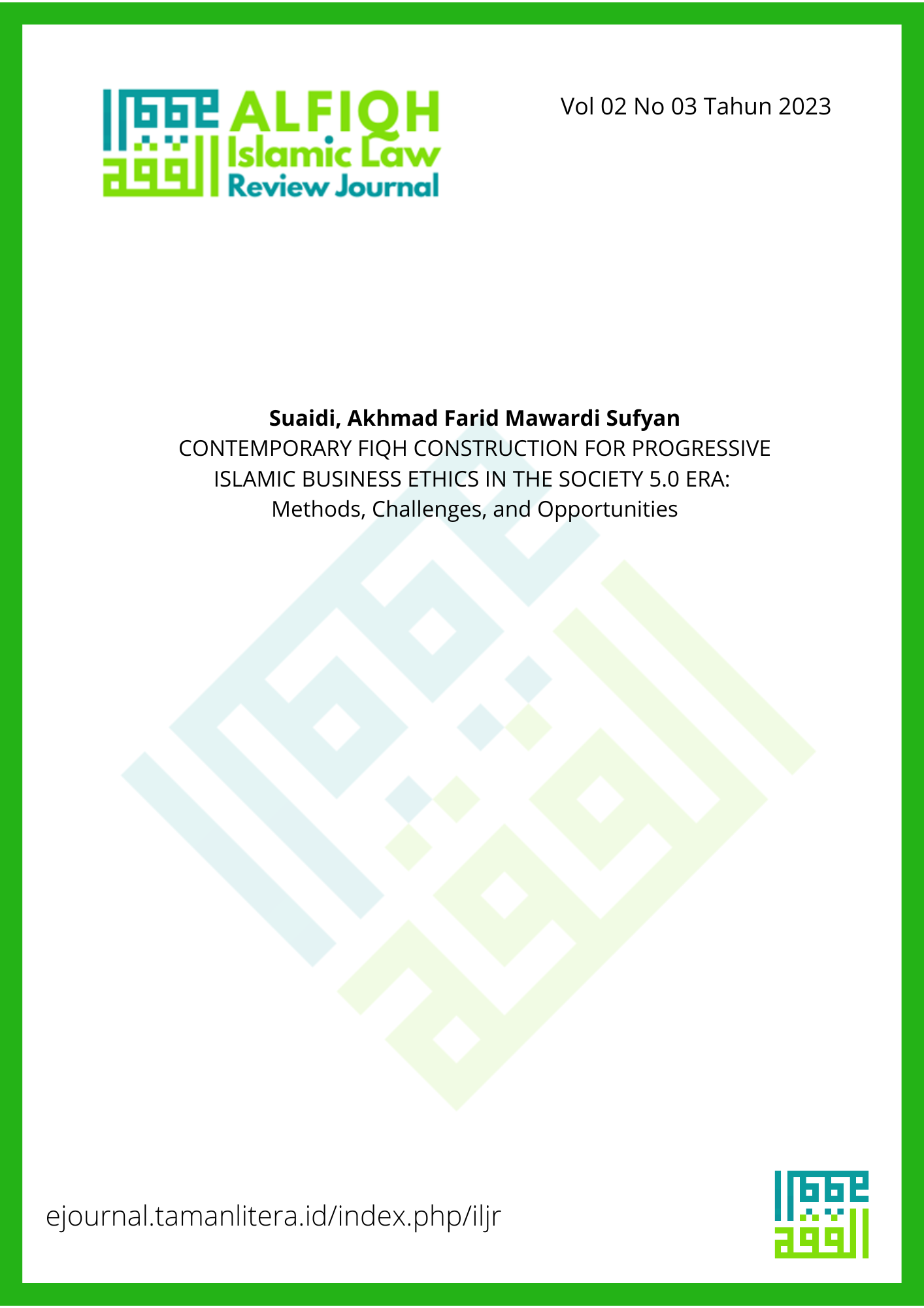 CONTEMPORARY FIQH CONSTRUCTION FOR PROGRESSIVE ISLAMIC BUSINESS ETHICS IN THE SOCIETY 5.0 ERA: Methods, Challenges, and Opportunities